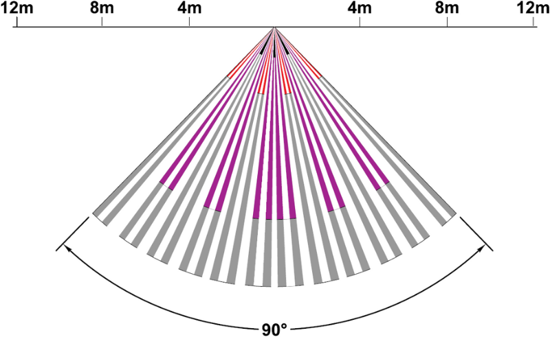 Зоната на детекция покрива радиус от 90° в областта пред PIR елемента на разстояние до 12 метра. Благодарение на функцията за защита срещу задействане от движение на животни, детекторите от серии PIRIN и TITAN допускат присъствие на домашни любимци до 40 кг (зависи от модела) в наблюдавания периметър, без да задействат сирените в режим на включена охрана.