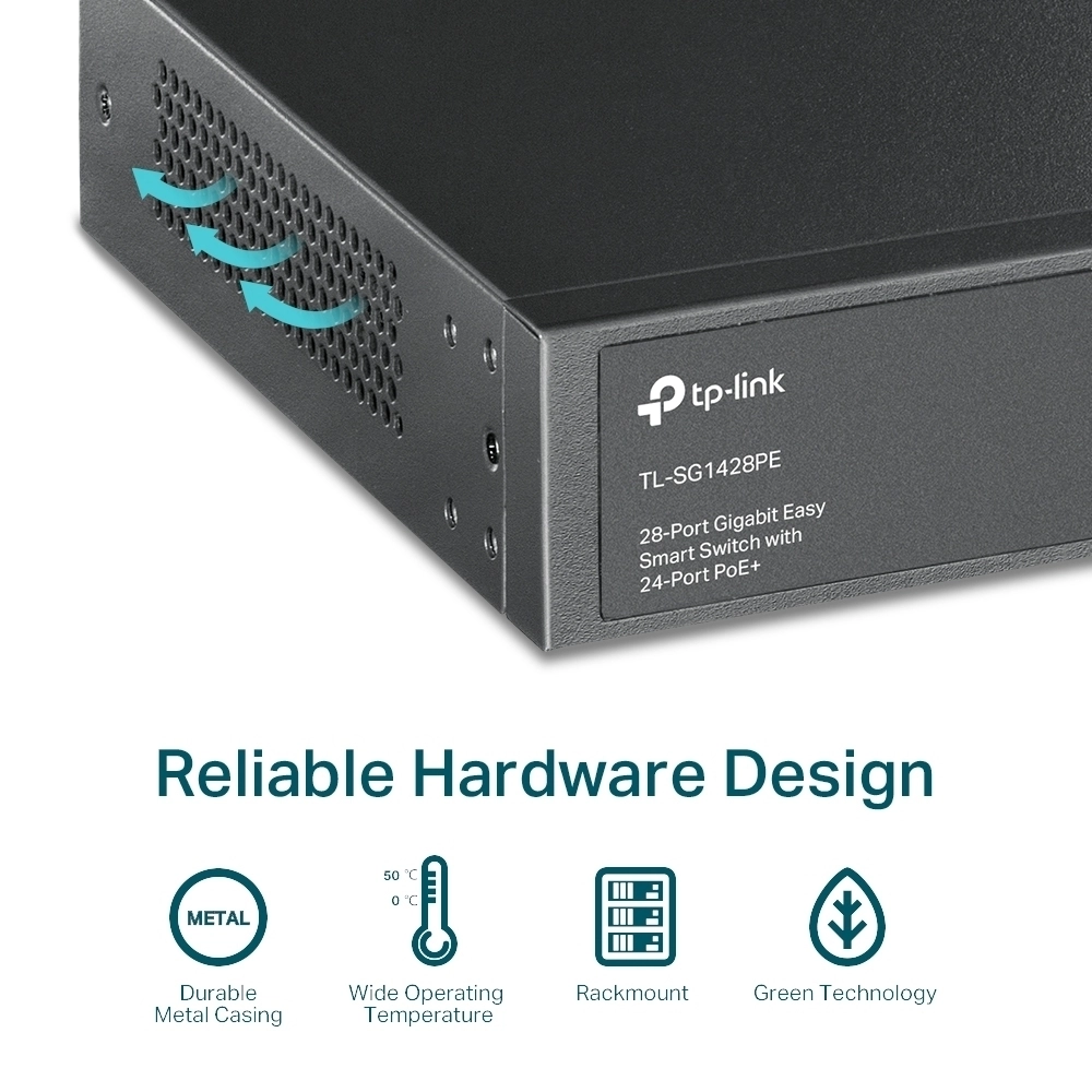 2 x 10/100/1000 Mbps, 24 x 10/100/1000 Mbps RJ45 PoE+ Порта, 2 Gigabit SFP Порта, до 27W на порт, обща мощност 250W, PoE Auto Recovery, Интелигентното управление на захранването... виж повече