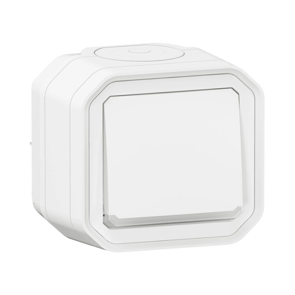Бутон моноблок 10A с подсветка LED 230VA открит монтаж IP55 Бял Plexo New... виж повече