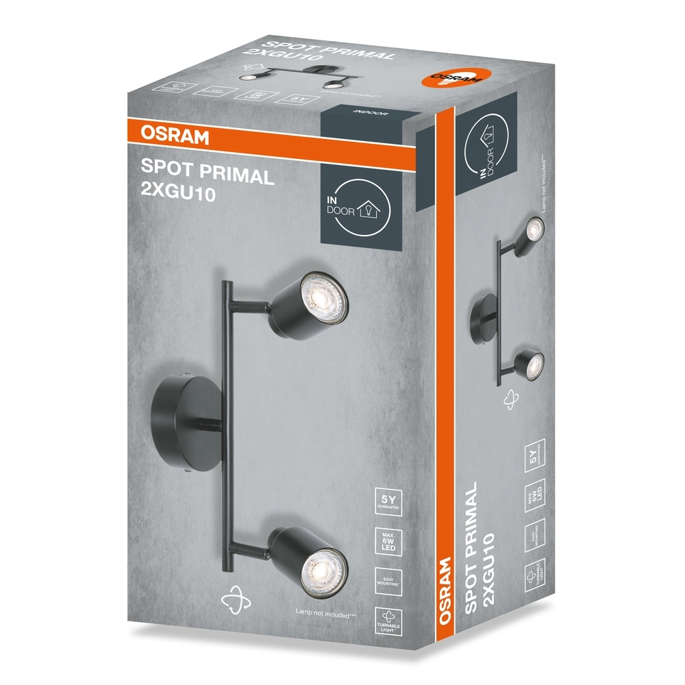 Декоративен спот прожектор PRIMAL 2XGU10, черен, OSRAM... виж повече