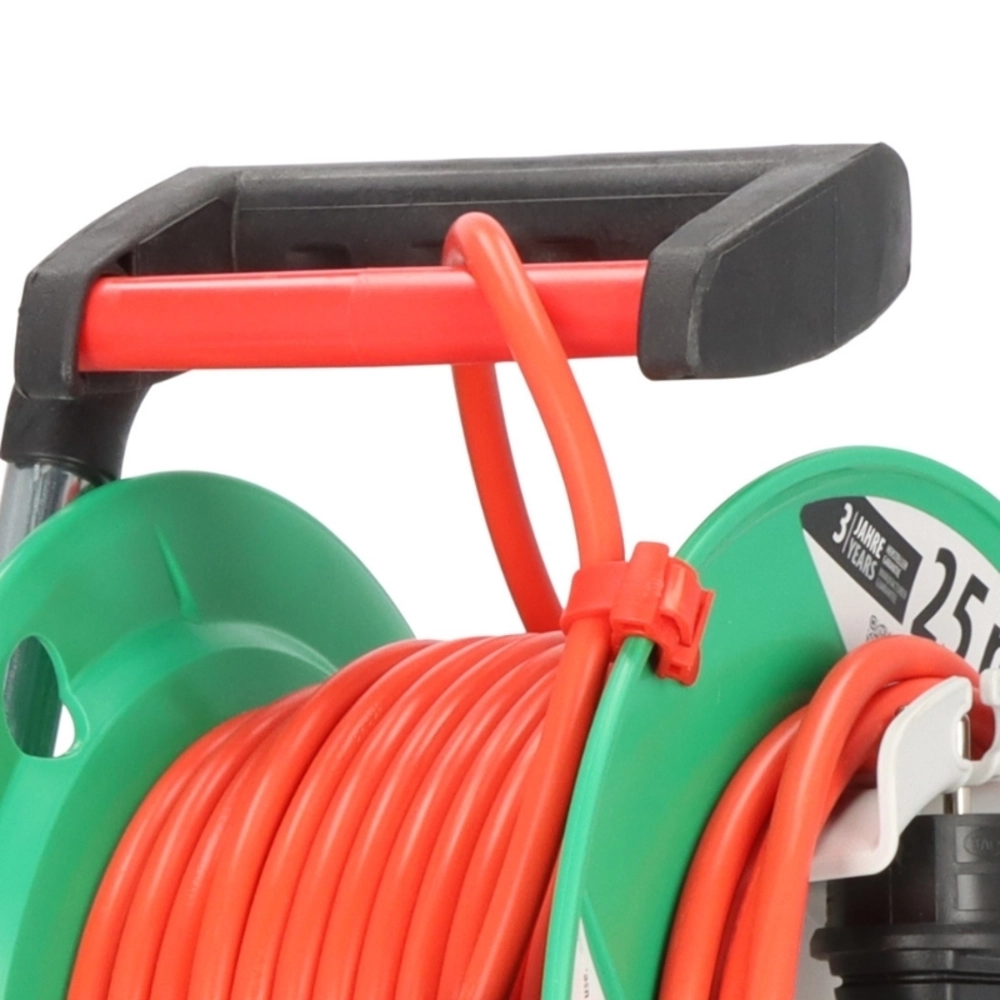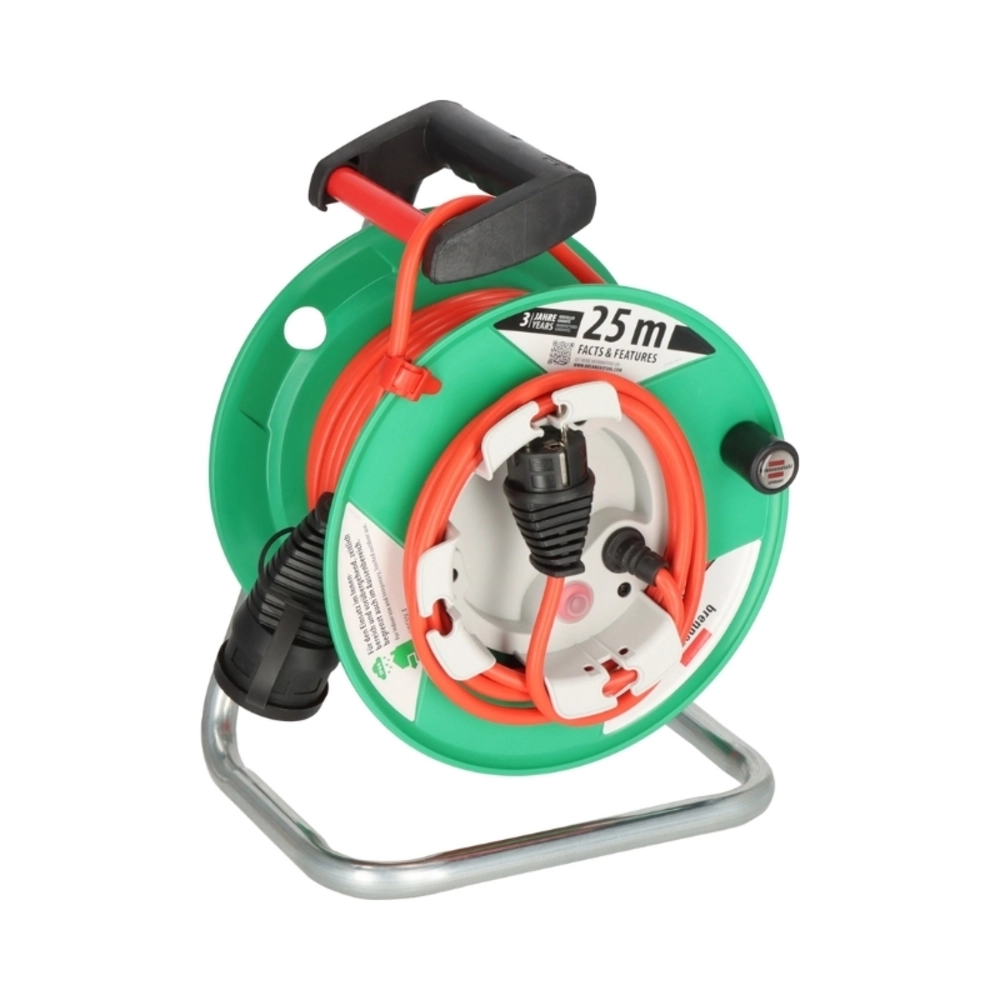 Градинска кабелна макара Garant G 23+2m IP44 H05VV-F 3G1.5mm2 термозащита с индикатор, цвят Зелен. Копрус от специална пластмаса върху поцинкована носеща рамка. Ергономична дръжка с ос за перфектно водене на кабела при навиване и развиване. Диаметър на барабана ф240mm.... виж повече