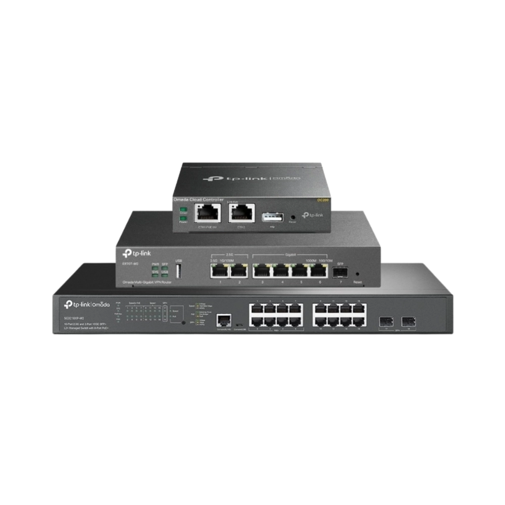 Комплект устройства на Omada - ER707-M2, SG3210XHP-M2, OC200 ER707-M2 - ER707-M2 е Multi-Gigabit VPN Gateway с два 2.5 Gbps порта, четири Gigabit WAN/LAN, един Gigabit SFP и USB 2.0 за LTE бекъп, позволяващ до 6 едновременни WAN връзки с Load Balancing. Осигурява до 500 000 сесии, NAT производителност над 2.3 Gbps и VPN скорости до 650 Mbps (IPSec) и 343 Mbp... виж повече