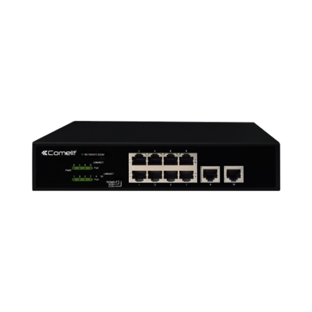Гигабитов PoE мрежов суич с 8 PoE порта и 2 uplink порта. Съвместим със системата ViP (ECN 002). Поддържа стандарт IEEE802.3af/at, с общ капацитет 120 W. Има поддръжка на Jumbo Frame, VLAN и Long Range режим до 250 m. Подходящ за CCTV системи.... виж повече